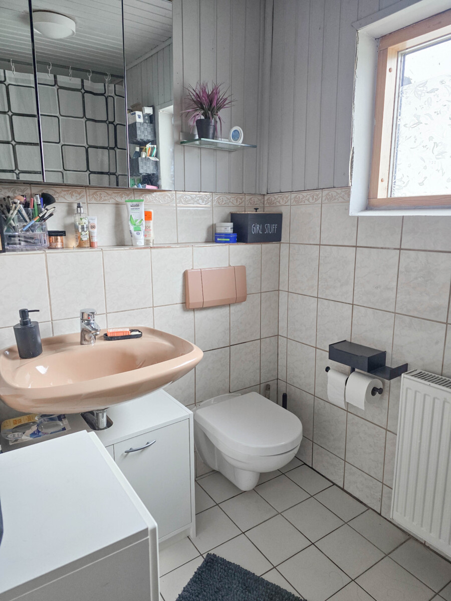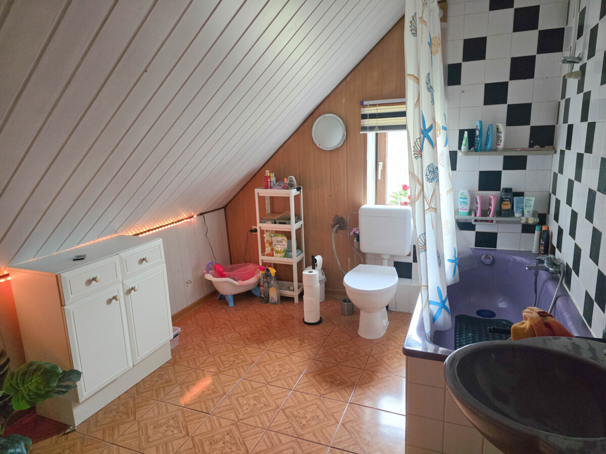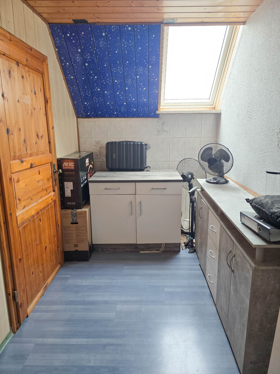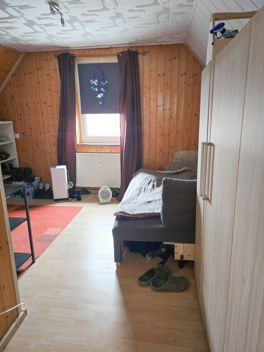 Die Wohnung im Erd- und Dachgeschoss wird zusammen von 1 Mietpartei bewohnt, die Mieteinnahmen betragen 1.075,– € Warmmiete (ca. 900,– € Kaltmiete). Mit diesem Betrag sind alle Kosten pauschal abgedeckt, bis auf Strom und Heizung. Heizöl kaufen die Mieter auf eigene Kosten.